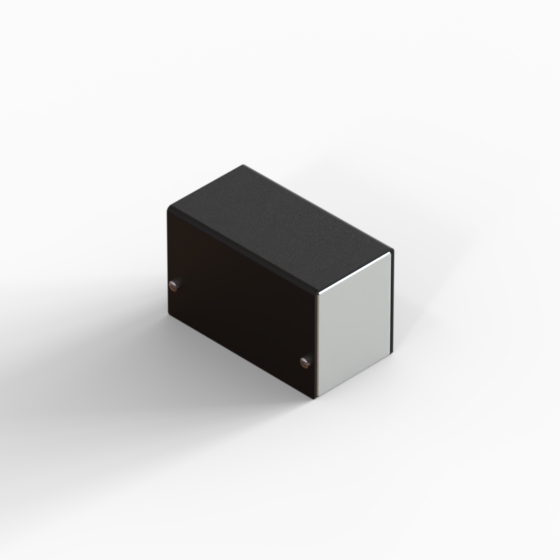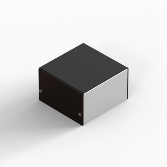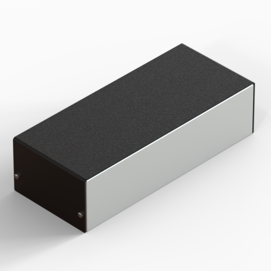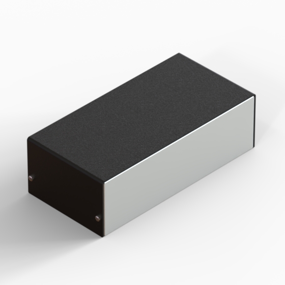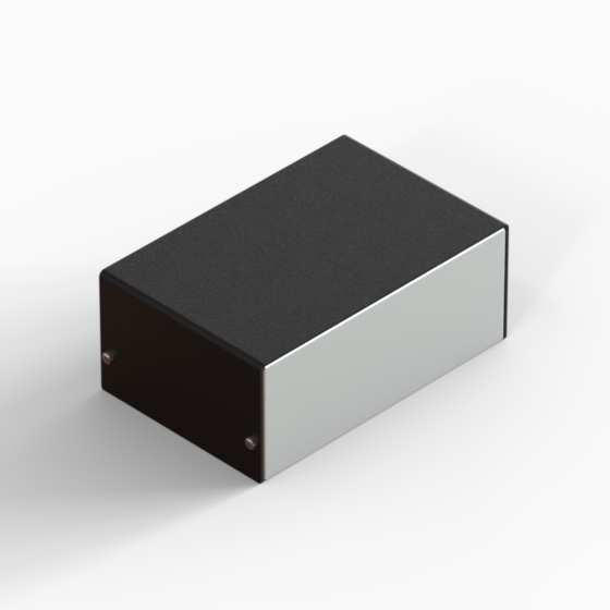 Aluminium enclosures with silver metalised base and black cover. Simple and speedy to assemble, with four screws to put in place.