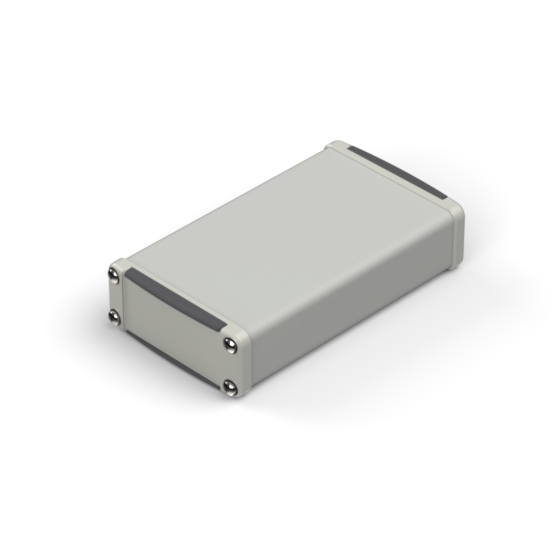 Series of small powder coating aluminium enclosures with multi-shot moulded (ABS+TPU) two-tone coloured front cover panels. They have co-moulded sealing to protect against water and from dust (IP65). The internal guides allow an easy assembly of PCB. Closing by eight screws.
