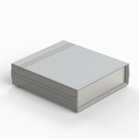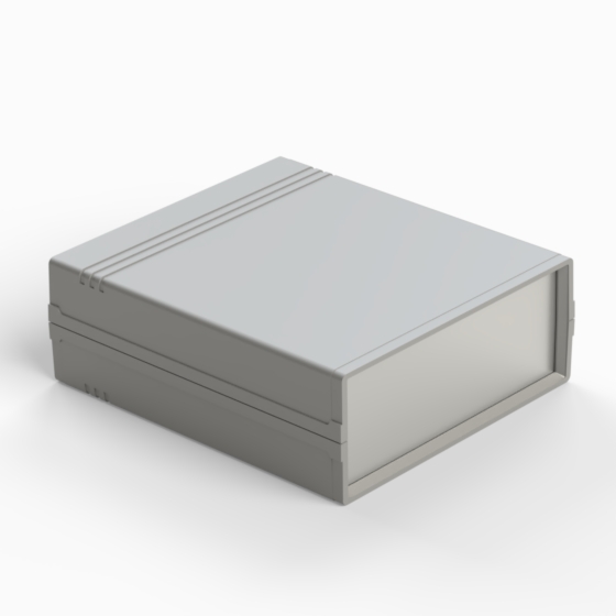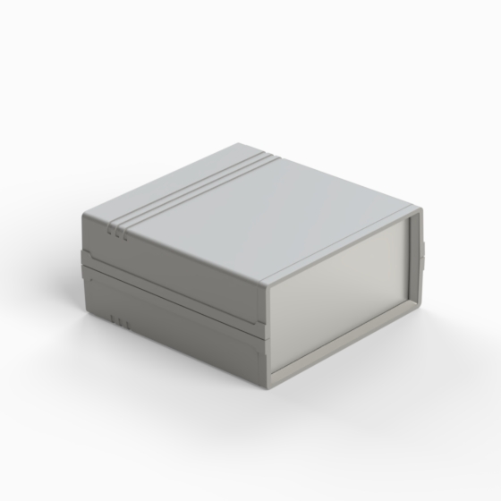 An ABS enclosure with a 9V battery compartment in the rear panel. Each half-shell has integral PCB guides and mounting studs. Matt surface finish. Closing by only two screws. Available also ABS front panels (.13).