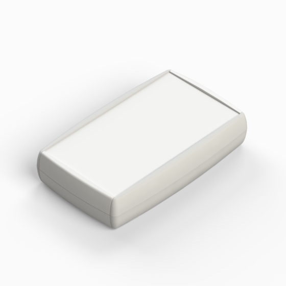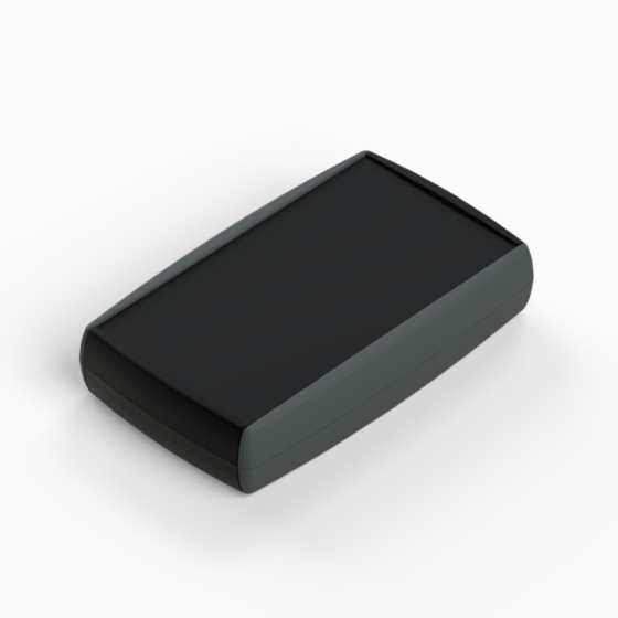 ABS enclosure with new soft-touch contoured shape. By utilising multi-shot moulding technology, the MINITEKNET features an ergonomic design of elastomer grips (TPU) on the side of the case. Battery compartment for two 1,5V (AA) mignon cells or one 9V flat battery (PP3). Base and cover have integral PCB mounting studs. Matt surface finish. Closing by four screws.