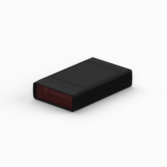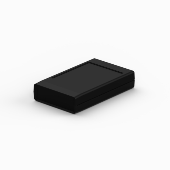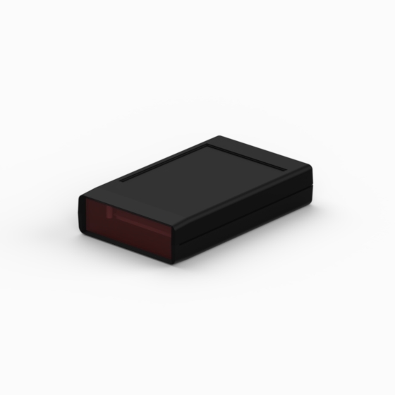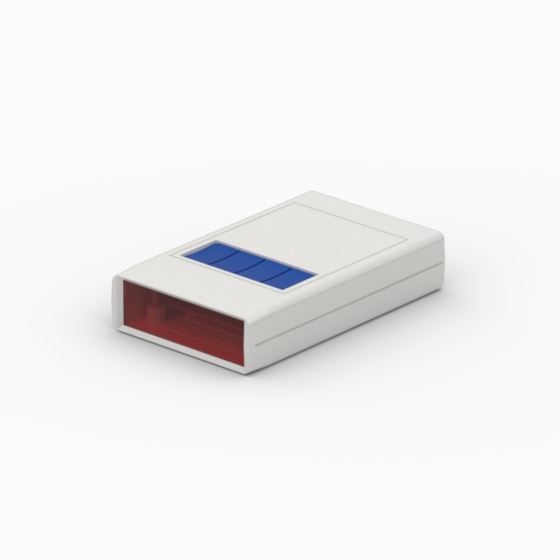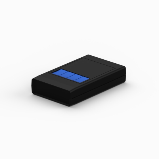 ABS enclosures with ergonomic design. The base and cover have integral PCB guides and mounting pillars. The base has a compartment with snap fit sliding door for housing either a single 9V battery or two 1.5V batteries. Available also a front panel permeable to infrared light (Mod. SQ1-IR and SQ124-IR). The model “SQ124” has one, two and four blue push buttons set. The models “SQ11” and “SQ11-IR” have a recessed area suitable for keypad membrane. Closing by three screws. Upon request dual miniature clip for 9V battery (Mod. AB9), Self adhesive spacer for batteries (Mod. DSA).