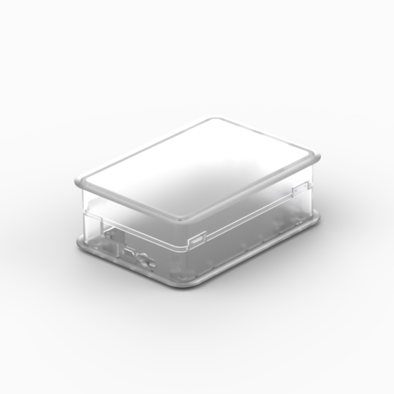Stable and functional Beaglebone-Black case featuring a square shape and a modern design that guarantees a perfect fitting of top and bottom to protect the board. Molded in self-extinguishing material (ABS + PC), it is perfect for both personal and professional use. It is available in three colours (black, white, transparent). Bright LED light-guide on the front. Aeration slots on the perimeter of the base. Snap-on closing. Accessory: Vesa mount adapter (RPI-VESA).