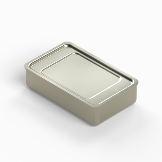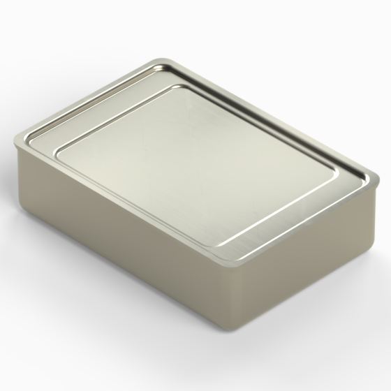 Electrolythic tin-plated steel enclosures for High/Frequency electronic components assembly with a cover that can be soldered on for hermetic sealing. Volume of casing is suitable for easy assembly of professional and High-Technology circuits.